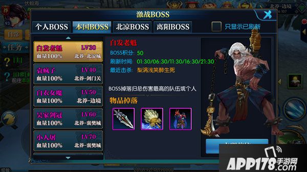 世界boss过一段时间就会刷新,点开世界boss就能看到刷新情况,世界boss非常强大,各位将军切记量力而行,叫上小伙伴一起会容易很多,单挑难度很大的哦。