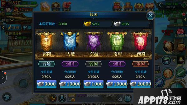 强国可能几万银子,弱国只需要几千银子就可以转国了。
