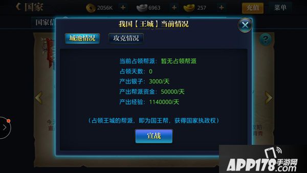 4.领地奖励:只要你的帮派有占领的城池,第二天会根据你在帮派的职务得到大量的经验和银子奖励,职