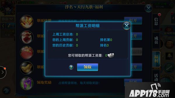 3.帮派工资:加入帮派以后每周根据你对帮派的贡献和帮派的排名发放银子奖励。