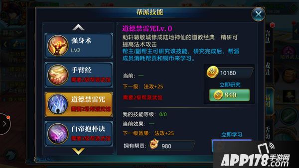 1. 帮派技能:只要有帮派贡献就可以学习帮派技能,帮派技能有很多项根据帮派等级开放, 会 增加成