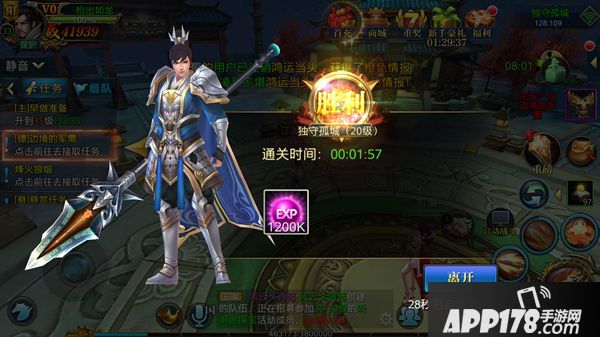 镇守孤城属于经验副本,通关可获得大量经验奖励,副本属于单人副本,在23开启。
