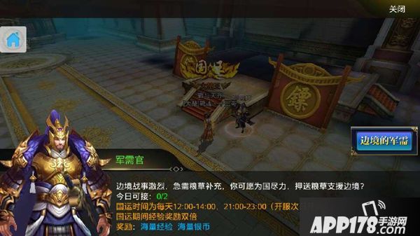 从第二天开始做任务就要留意了,每天的12-14,21-23点运镖是2倍刺探是1.5倍经验。高V前几天最好全红毕竟前面几天等级高优势还是很大的,低V的话可以橙色实在运气差就紫色吧!换镖令可以在国家页面国战里面兑换,100贡献一个令还是比较划算的。高V就别换了留着升级国家技能吧!