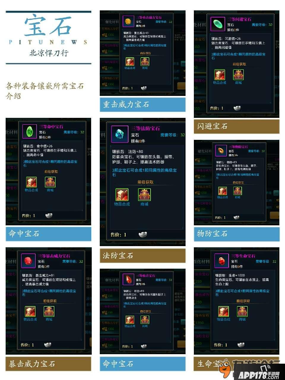 闪避宝石、命中宝石:镶嵌在手镯、玉佩上分别提升闪避值和命中几率。