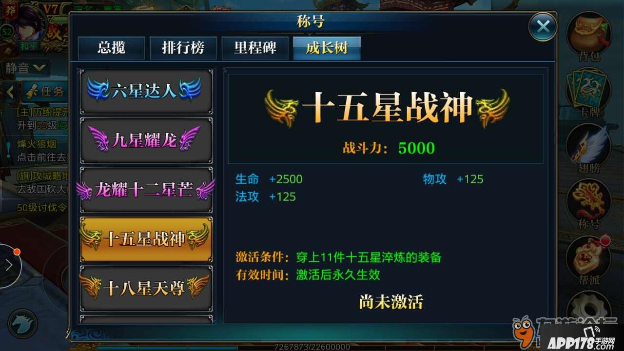 装备淬炼是按照星级来划分,每三颗星为一个月亮,6颗星为一个太阳,装备三星以后就会激活套装效果,增加套装属性,提升高额战力。三星激活为三星伴月,六星达人,九星耀龙,龙耀十二星,十五星战神,十八星天尊,升星级会让武器和身上各部位装备发光,比格满满。