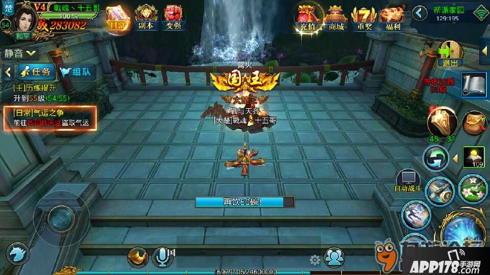 对酒当歌在18.30之后帮派开启篝火之后在去做5人组队经验加成很高,有什么酒喝什么酒吧!帮派每天都养猪强盗秘境也有不少的经验所以大家有时间尽量参加。每天十次的擂台挑战一次也有好几万经验,有国王之后国王膜拜任务6个国家的国王都可以膜拜,经验也不菲而且还给铜币,铜币在境界开启之后会很缺乏。