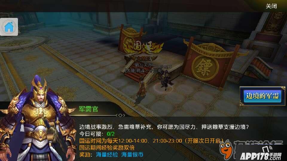 从第二天开始做任务就要留意了,每天的12-14,21-23点运镖是2倍刺探是1.5倍经验。高V前几天最好全红毕竟前面几天等级高优势还是很大的,低V的话可以橙色实在运气差就紫色吧!换镖令可以在国家页面国战里面兑换,100贡献一个令还是比较划算的。高V就别换了留着升级国家技能吧!
