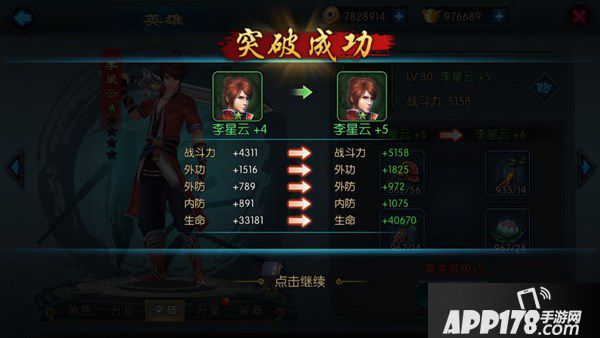 当英雄的等级达到一定等级后,即可消耗材料进行突破,突破可大幅度提升英雄的战斗力。