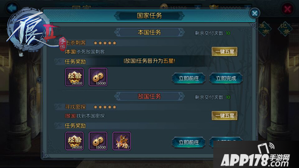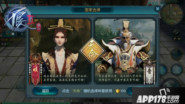 玩家在等级达到一定等级后,通过引导任务可选择加入国家,这个时候玩家可以选择自己喜欢的国家加入或使用天命所归功能随机选择(注意:国家一经选择后不可更改)