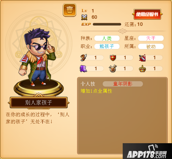 游戏的基础:战斗方式为回合制,先攻高的先出手,一样先攻的你打的你先出手,对方打你的对方先出手,所以先攻很重要,前期20先攻足够。防御能减少伤害,100以后效果尤其明显。暴击能够提高暴击技能的伤害,走暴击流的可以带上,伤害提升非常可观。闪避能增加闪避普通技能跟非必中技能的概率。王者属性可以增加攻击威力,前提是你比对方高,这个前期可以不考虑,效果不明显。至于技能的发动概率这里是按照乘法来算的,就是说一定要把效果好的技能放在前面,这样触发几率就会大。