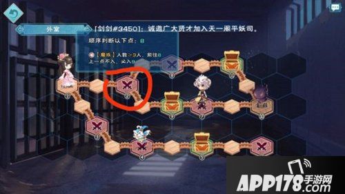 再点击下一个交叉点,这种交叉点都是不同支线的表现,我们点击之后可以看到这关的支线提示,队伍中魔族人数大于3就前往8关卡,小于等于3就去9关卡。上面的话还是比较好理解的。