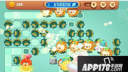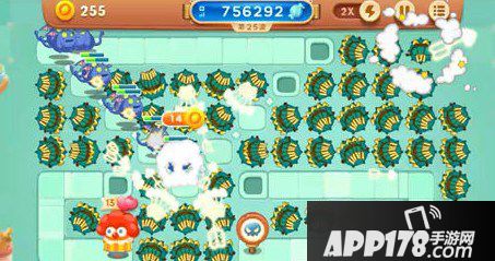 战斗到了此时,怪物的移动速度和血量均明显提高。多重箭并不具备减速的能力,所以糖果车早已被怪物攻陷。不过没关系,多重箭会帮助萝卜丝愉快地度过“奖励时间”。别忘记把空置的地方建造上多重箭哦~