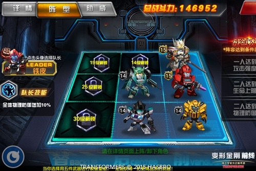 所谓好马配好鞍、宝刀配英雄,自身属性再强力的变形金刚,如果没有好的装备支持,那么也不能发挥出全部的能力。玩家可以根据变形金的职业和属性,分配合适的武器装备,例如防御型装备优先分配给铁皮等坦克型卡牌,而攻击装备则优先分配给杯子、漂移等输出型卡牌,当然武器的强化和升级也不要忘记了。除了装备之外,合体金刚也是决定战斗胜负的重要因素,其大范围的攻击、控制技能,会为队伍提供非常可观支援,同步进阶自己的合体金刚,会让你在战斗中受益匪浅。