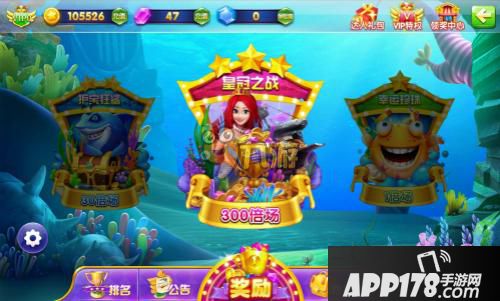 在全新的正版捕鱼达人4中,随着道具、场景的不断更新,炮倍的不断提升,玩家的倍场从1到30,现在300倍场来袭了,在这个主场中重点的还是皇冠之战,这个倍场可以说是给玩家带来不一样的体验,在这次玩家可以把炮倍调至300倍,这绝对能够让你玩得畅快。那么怎么过呢?接下来APP178手游小编就来和大家详细的说说捕鱼达人4皇冠之战300倍场攻略,希望对大家有帮助哦!