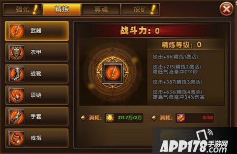 精炼部位与强化类似,但是精炼系统中可以提升更多的战斗力,并且还可以强化技能效果!精炼系统可以提升对应部位的精炼等级,提升精炼等级可以增加角色属性,降低技能CD,加强技能效果。
