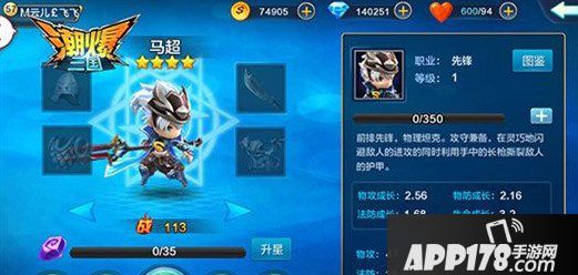 从初始的属性上也能发现马超即擅长防守也擅长进攻。他的物攻成长非常不错,代表着他有不俗的基础伤害;而他的物防成长和生命成长也都体现出他作为一个前排物理坦克的身份,可以吸收大量的伤害;对于马超来说法防也许是一大弱点,并不能有效的防御法术伤害。