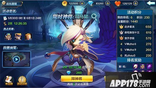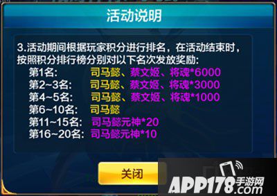 前10名玩家可以直接获得活动神将——司马懿,还有热点英雄和将魂可以拿,如此丰厚的排名奖励,主公们可得努力争取,不然奖励就属于别人家了!