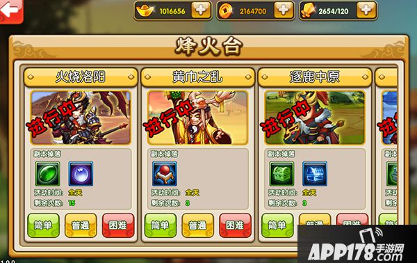 12级开启的烽火台中的火烧洛阳副本。有简单,普通,困然三个难度。通过该副本会掉落一些可以兑换铜钱的道具。这里算是获取铜钱肥水最多的地方了。随着副本的难度不同,获取的道具数量也不同,挑战越困然获取得越多。