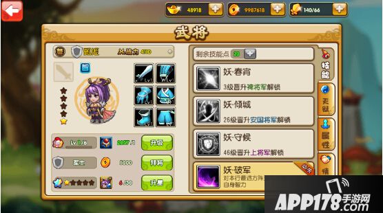 优势:必杀技可对敌方后排造成大量伤害;可与登录赠送的貂蝉激活情缘属性;在60级可突破封红,实力大增。