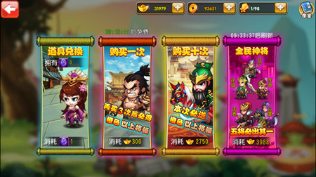 全民神将:相比于其他方式购买带来的不确定风险,全民神将的优点就是武将选择透明化,如果有玩家中意可以直接进行抽取,概率缩小到五分之一哦!