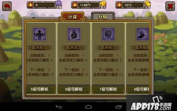 科技:这个没什么说的,相当于主基地,升级可以给武将提供附加的属性加成!