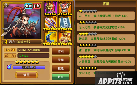 吕布爸爸到3星就好,升再高就相对比较困难,而且恐怖的是吕布的技能,升星带来的属性可以通过装备和天赋等弥补