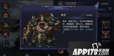 为什么说超高性价比呢,首充直接送典韦了,另外酒馆、vip特礼包也可以获得典韦。典韦的装备选择主要是高防御(物理防御)高血型装备,战斗中典韦作为主角色排在在前面,也方便玩家控制战斗节奏,不至于在战斗过程中减员。