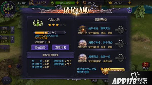 提升【爵位】,需要累积【功勋值】。功勋值有以下几种获取途径:
