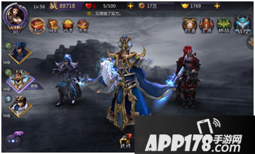 角色设计:本游戏中没有主角色,所有上阵角色均为武将角色,风格为暗黑风,美工非常不错,且根据星级的变化附加的特效也更容易让人接受,精细的人物造型和画面感,是这款游戏的一大亮点。