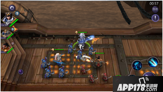 在《超凡三国》中战斗是一件非常有趣的事情,玩家一共可以带领三个武将和三个亲兵。分别为前军、中军、后军。三个武将可以来回切换进行控制,玩家可以选择自动战斗,也可以选择手动控制。