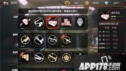 推荐升级弹药充足,可增加PVP和PVE弹夹,武器备用弹夹增加数量和称号等级相关。