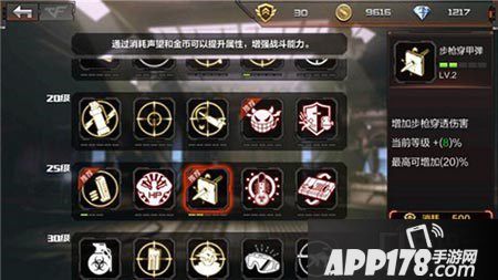 推荐升级步枪穿甲弹,可增加步枪穿透伤害,最高可增加百分20穿透伤害。