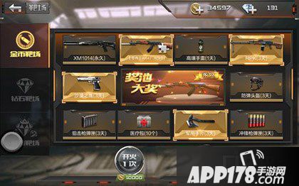 玩家可以使用10000金币开火一次,或是90000金币开火十次(9折),在金币靶场奖池中的大奖是永久AK47-A。其余的奖励都是平民级武器。
