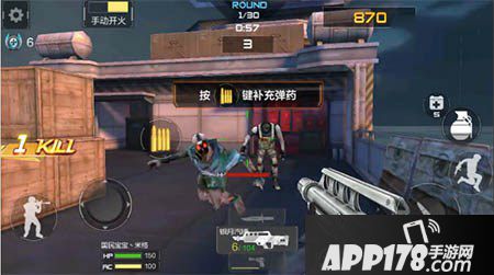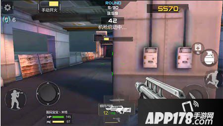 游戏开始,首先是要站好位置。如图贴着左边补给箱,注意子弹,快没了补给一下,然后边打边前后走一下(为了可以补给),这样基本等于无线子弹了,而且怪只从左边的门口出来。1-6关轻松拿下。