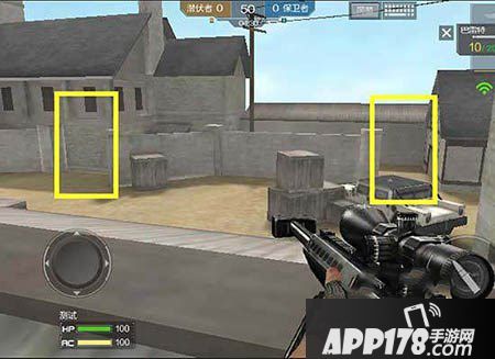 当然我方狙击手也可以在这里,位于老家吉普车旁的箱子那,专卡窗口这一点,以防敌方从窗口攻击我方玩家。