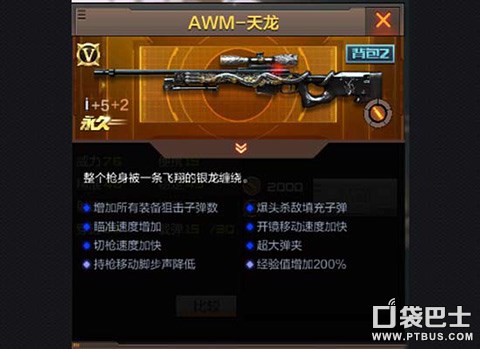 AWM—天龙是一把结合了之前多把awm系列枪支优点的一把枪,拥有高精准、高便携、高稳定的一把神器,在英雄级武器中可以算的上数一数二的。同时AWM—天龙有着非常霸气的涂装,不时的向世界述说着其的霸气。我推荐玩家们如果可以的话,入手这把枪,这是一把不错的awm,狙击必备神器啊!
