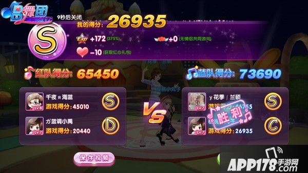 在游戏房间里选择好队友,完成组队后就开始游戏吧!游戏中人物的站位也有所不同咯。是根据所在队伍分别在左右两边,俩俩站立进行各自的舞蹈。最终按同队伍里得分的总和来计算胜负,成绩高的队伍为胜利方哦,拿到的经验和金币奖励也会多一些哦!还有特殊的庆祝动作哦!