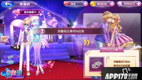 通过不断的努力,亲密度提升到5级后,任意一方点击“求婚”发出求婚的请求。
