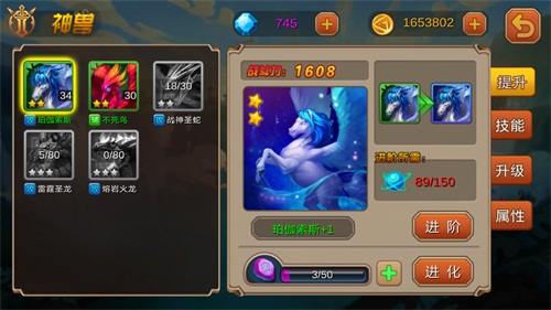 宠物是重要的战斗伙伴,小伙伴完成65手游《超神联盟》新手引导就能得到第一个宠物天马,除此之外,大家要想拥有其他的宠物就必须挑战“神兽副本”。目前 在神兽副本中,有五种宠物可用玩家挑战,天马、圣蛇、凤凰、火龙、雷龙,玩家只有达到挑战等级才能挑战对应的宠物。每天有3次机会挑战神兽,玩家可以根据 自己的实力选择,成功后可以获得该神兽的魂石、神兽积分、进阶丹、经验丹。