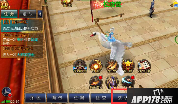 点击左下角“小箭头”打开战队界面,点击“五行试炼”按钮自动寻路至“五行试炼管理员”处即可开始参与;