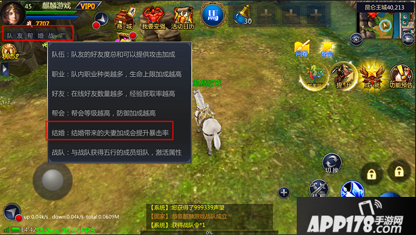 从方框中可知,不光是结婚,连队伍、职业、好友数、帮会、战队等社交系统,都会随着同时在线人数、团体等级的提升而对当前人物产生不同程度的属性加成。所以,对于【上下一心、高聚心力】的玩家团体而言,这将产生很大的优势。希望各位,都能找到自己的齐心战斗小队~~~