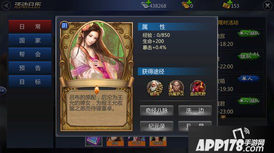 卡牌获取途径主要通过世界、副本BOSS,目前已有的卡牌如:吕布貂蝉、四大美女、八仙过海等,卡牌的星级和数量越多,激活对应的战力和属性越强大。