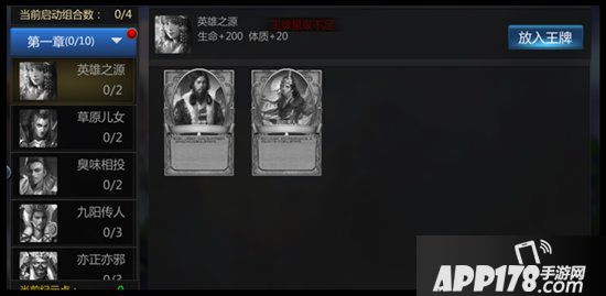 《成吉思汗手机版》玩家达到45级之后开启纪元录功能,通过游戏内产出各种卡牌,放入对应卡槽内可激活相应属性,高级组合将会需求卡牌达到一定星级,通过消耗其他多余卡牌可升级卡牌星级,达到星级后即可放入,每个角色最多可同时激活九种组合。