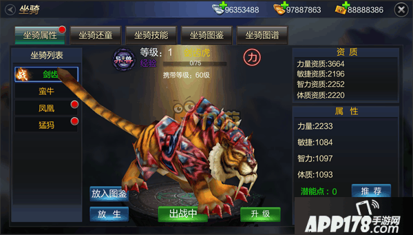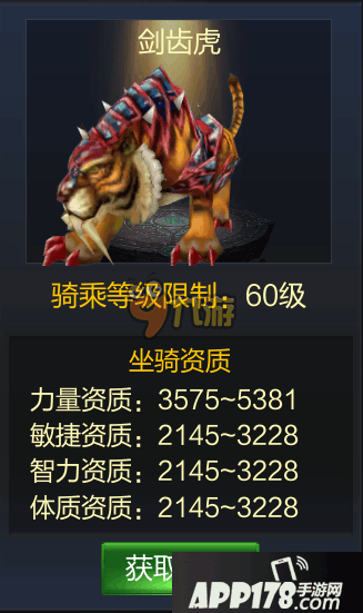 在成吉思汗手机版迎来公测时,近期不断的游戏的新资料或者新玩法出来,在上周曝光的新坐骑涅槃凤凰APP178手游小编可是为大家详细的介绍了它的属性,那么在这次将会来和大家详细的介绍一下新坐骑剑齿虎,下面和APP178手游小编一起来看看吧!