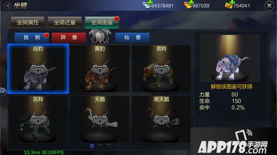 玩家拿到坐骑之后需要进行培养,通过副本经验和经验道具都可以使坐骑升级,另外可用还童道具改变坐骑资质属性,以达到坐骑属性和主角匹配的目的。玩家角色等级达到55级后开放坐骑图鉴功能,不直接出战的坐骑可放入图鉴,图鉴中坐骑也能为角色提升相应属性加成,所以要多多收集和你角色属性匹配的坐骑放入图鉴也能提升战力。
