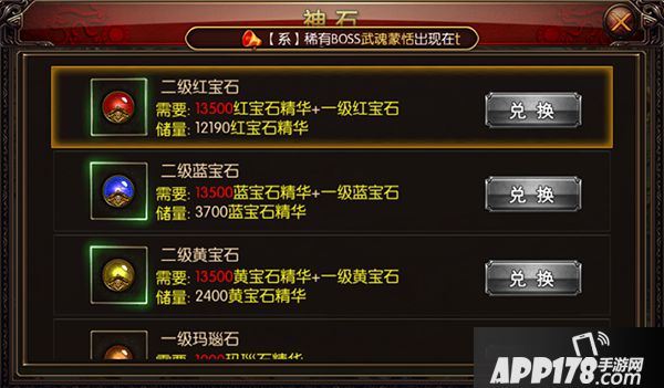 ④个人BOSS 每个等级的BOSS,除了掉落一定道具,不同类型的神石精华也是掉落之一。