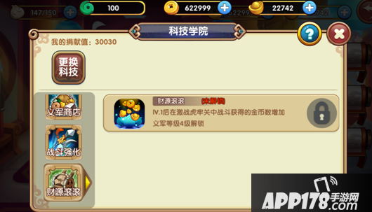 战斗强化的科技主要是在后期开启军团战是增加军团的武将攻击,也需要捐献。