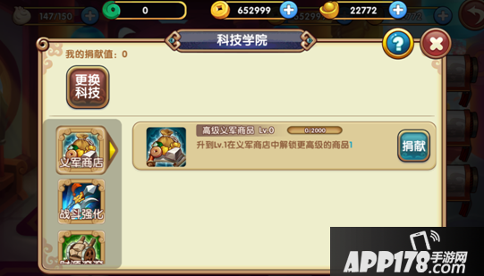 科技里面就是类似军团捐献,可以解锁军团里的功能,这个需要大家一起努力,每日捐献是有限的,达到一定值数才能开启某个功能。