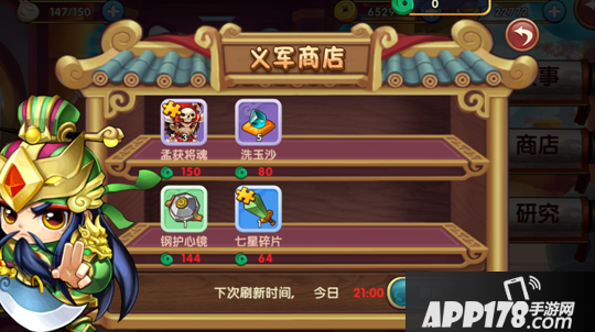 还有就是军团商店了,商店里面可以兑换的基本也是稀有道具碎片和名将将魂。兑换条件就是军团的“义军勋章”。