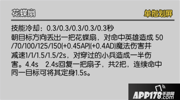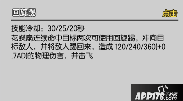 火舞在团战中前期以远程用花蝶扇骚扰为主,花蝶扇技能CD虽然非常短,但是要预判敌方走位释放,所以要尽量多的让花蝶扇命中敌方,主要还是以骚扰对面脆皮为主,一旦中了花蝶扇后接回旋踢把敌方踢进己方塔下或者己方队伍。技能时机的使用和配合是非常重要哒~